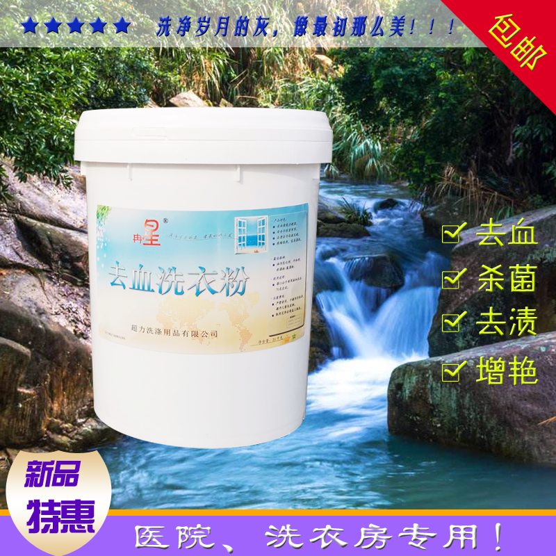 除血漬洗滌粉(醫院專用)含高科技去污活化劑和生物催化劑,活性成分高,融洗滌、漂白、增艷、去漬和殺菌功效于一體。能有效去除醫院床單、病號服上的污漬,特別對新鮮血漬洗凈率達100%,并殺滅和去除衣物上的常見致病細菌,使衣物潔凈衛生。產品無毒、無刺激性,使用安全方便。